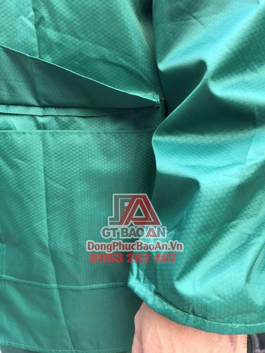 - Thân áo trước được phối kèm túi đựng. Người mặc có thể đựng những vật dụng nhỏ, tránh nước mưa làm ướt
